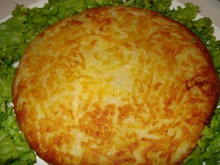 Numa panela média, coloque as batatas, água até cobrir e 1 colher (chá) de sal. Leve ao fogo alto deixando cozinhar por 10 minutos. Retire as batatas e deixe esfriar. Quando as batatas esfriarem, descasque-as e passe no lado grosso do ralador. Aqueça bem uma frigideira antiaderente ao fogo médio. Coloque ½ colher (sopa) de azeite e ½ colher (sopa) de manteiga e espalhe metade da batata ralada. Acrescente os queijos sobre a batata e cubra com a outra metade da batata ralada. Tempere com sal, pimenta e noz moscada. Deixe fritar por 10 minutos ou até que embaixo se forme uma casquinha dourada. Para virar a batata, transfira-a com uma espátula para um prato; coloque a frigideira virada de cabeça para baixo sobre o prato; segure os dois juntos e vire. Tempere o outro lado com sal, pimenta e noz moscada. Leve a frigideira de volta ao fogo baixo e deixe a batata dourar por mais 15 minutos. Transfira para um prato e corte em 6 partes.